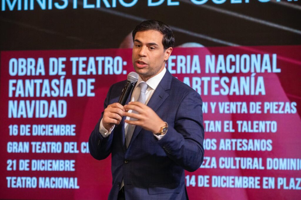 La obra de teatro “Fantasía de Navidad” será presentada el 16 de diciembre en el Gran Teatro del Cibao y el 21 en el Teatro Nacional. La Feria Nacional de Artesanía desplegará el talento y la riqueza cultural dominicana del 12 al 14 de diciembre en Plaza España, y la Noche Larga de los Museos, del 12 al 14 de diciembre, permitirá la entrada gratuita y recorridos guiados en museos de todo el país.